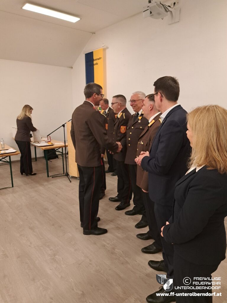 Ein Höhepunkt des Abends für unsere Wehr war die Auszeichnung unseres ehemaligen Kommandanten Bernhard Böck. Aufgrund seiner langjährigen verdienstvollen Tätigkeit und seines besonderen Engagements im Feuerwehrwesen wurde er zum Ehrenhauptbrandinspektor ernannt. Sie stellt eine besondere Würdigung für Funktionäre dar, die sich über viele Jahre hinweg in führender Position verdient gemacht haben.