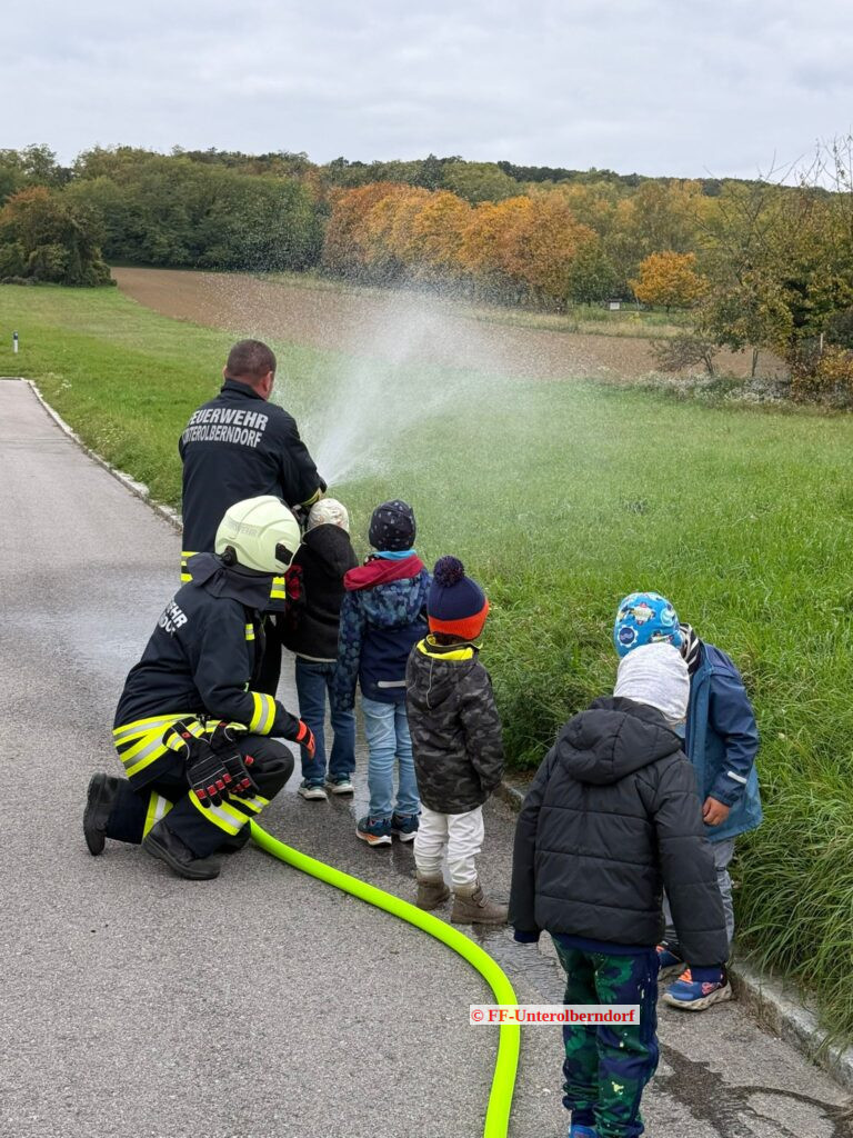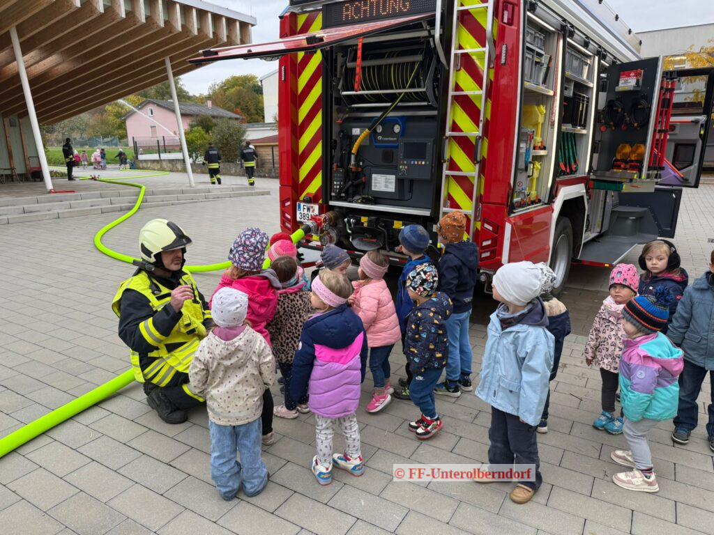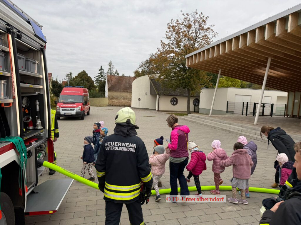 Ein Ernstfall im Kindergarten beschleunigt den Puls bei jedem Feuerwehrmitglied. Umso wichtiger ist die Übung derartiger Einsätze – sowohl für die Feuerwehr, als auch für die Kinder und BetreuerInnen. Es gilt vor allem Vertrauen aufzubauen, damit die Kinder keine Angst vor den Feuerwehrleuten und besonders vor den Atemschutzgeräteträgern haben. Die Übungsannahme bei unserer diesjährigen Evakuierungsübung war ein Entstehungsbrand aufgrund eines elektrischen Defektes im Eingangsbereich des Kindergartens. Beim Eintreffen der Feuerwehr waren bereits alle Kinder und BetreuerInnen am vorgesehenen Sammelplatz und der ATS-Trupp konnte direkt mit der Brandbekämpfung beginnen. Wir waren beeindruckt vom geordneten Vorgehen des Betreuer-Teams und von der Disziplin der Kinder. Nach der großen Aufregung durften alle die Feuerwehrfahrzeuge genau inspizieren und das Geschick als StrahlrohrführerIn unter Beweis stellen. Schlussendlich haben auch die Kinder der Volksschule Kreuttal die letzte Unterrichtseinheit für einen Besuch bei unserer Übung genutzt.