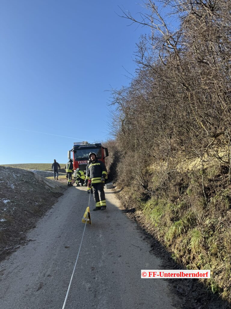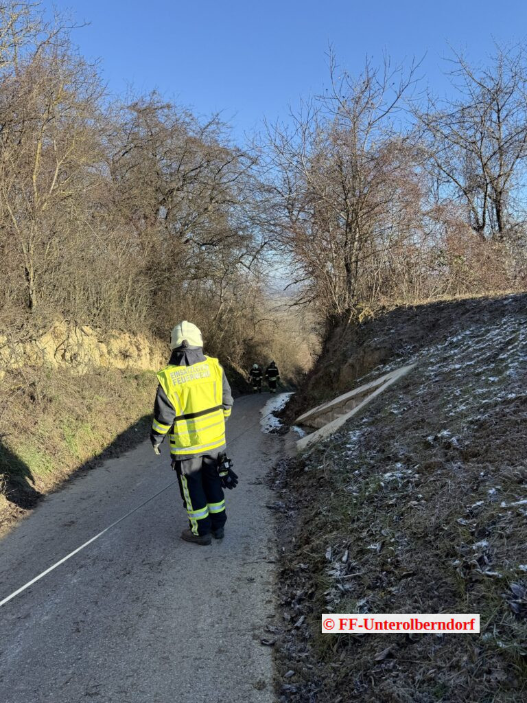 Während wir noch mit dem Forstunfall beschäftigt waren, wurden wir von einem Kameraden darüber informiert, dass es in der Kellergasse aufgrund von Glatteis zu einem weiteren Unfall gekommen war.