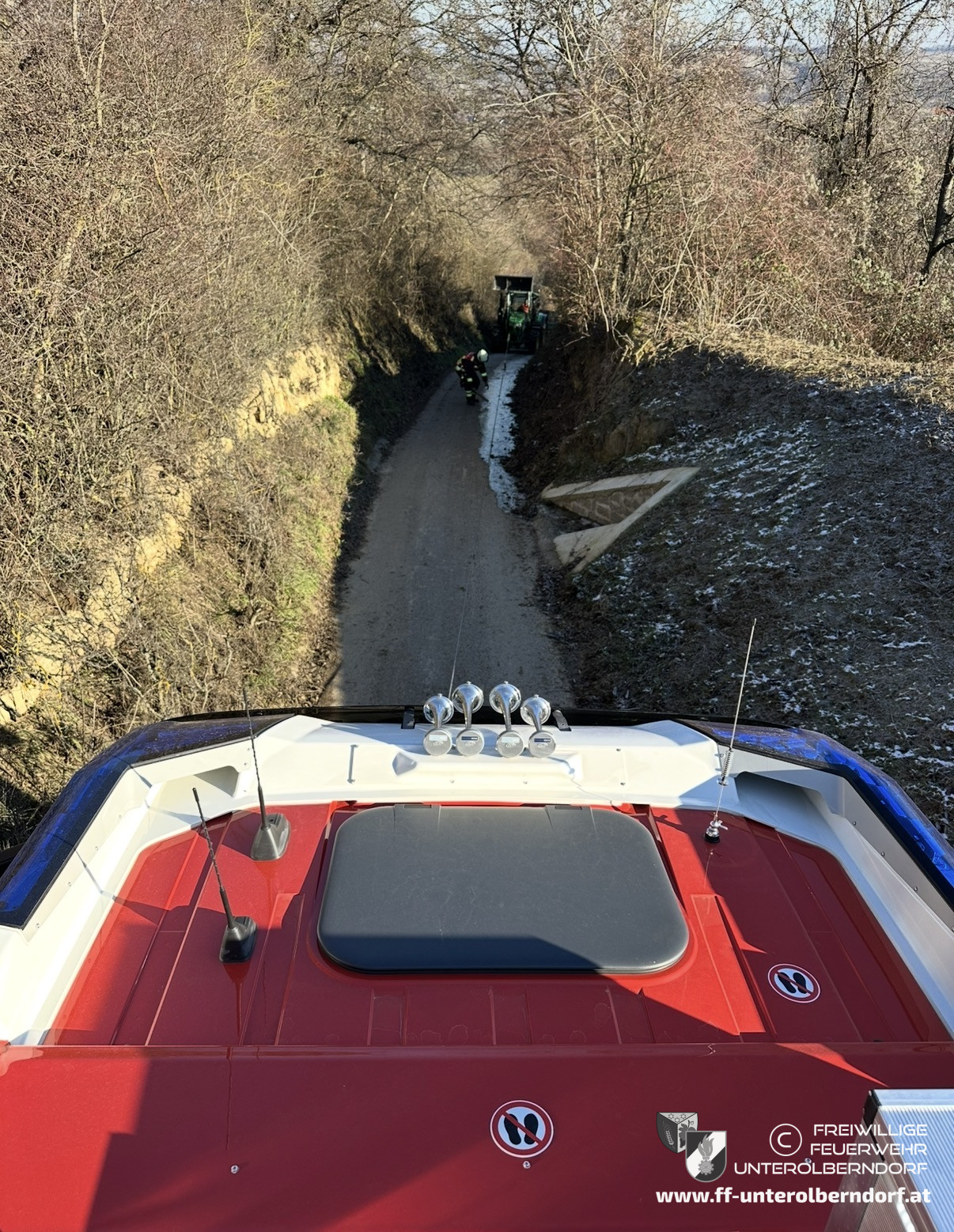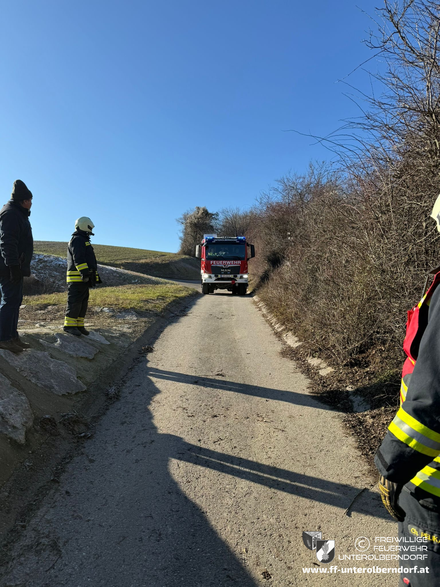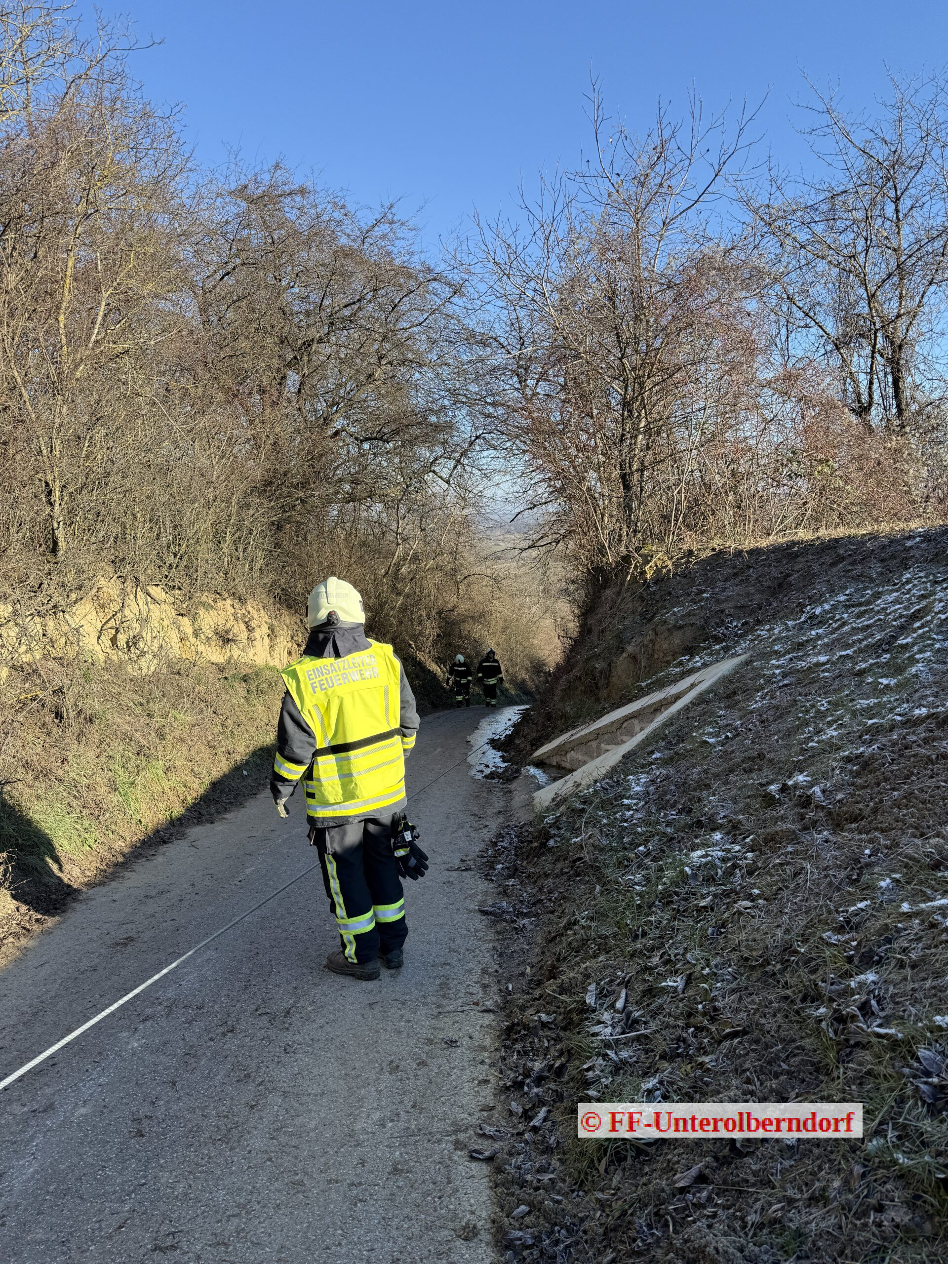 Während wir noch mit dem Forstunfall beschäftigt waren, wurden wir von einem Kameraden darüber informiert, dass es in der Kellergasse aufgrund von Glatteis zu einem weiteren Unfall gekommen war.